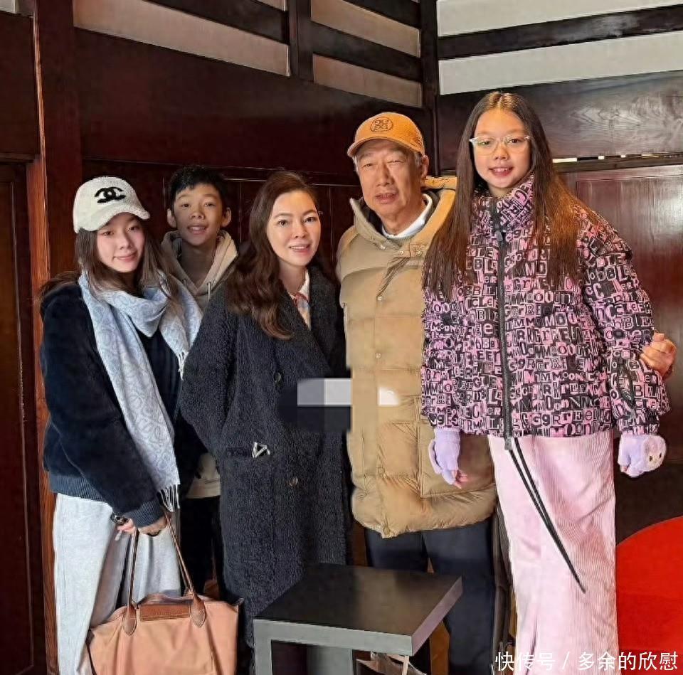 他们三个孩子也都出镜了。大儿子郭守善16岁,两个女儿一个13岁一个11岁,最小的是郭晓嫒。三个小孩站一起特别像妈妈,尤其是眼睛和脸型,基本没继承郭台铭的样子。难怪有人看了说,这仨孩子完全走的是妈妈路线。那次滑雪是全家一起出行,有合照也有互动镜头。郭台铭虽然动作不太利索,但还是把两个女儿搂在身边,笑得挺开心。这种场景以前很少见,毕竟他平时挺低调的,一家人同框的照片不多。上一次公开露面还是2025年9月,那会儿被拍到在台北街头散步,他还给老婆拎包,走路都让着她。